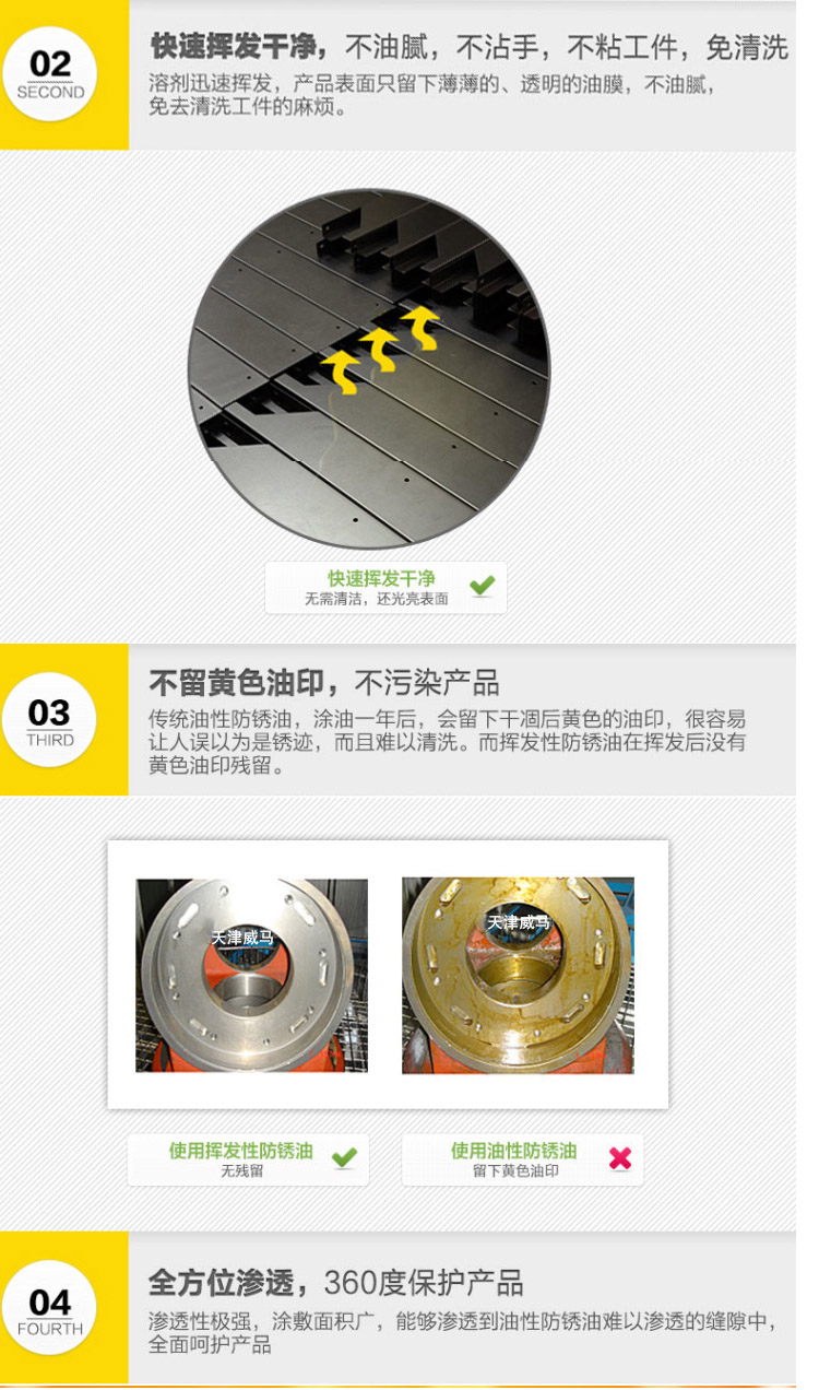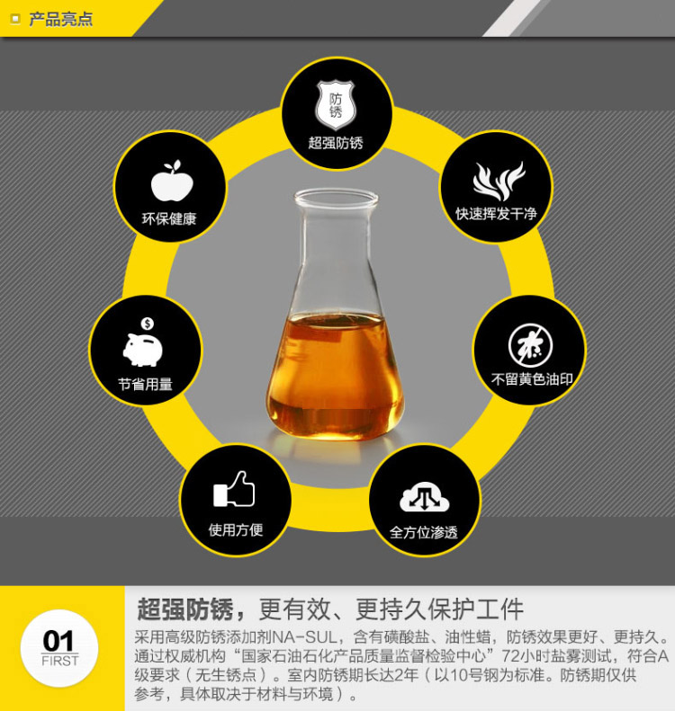 本品廣泛用于各類管材加工、汽配生產(chǎn)、機械制造等行業(yè)的金屬制品防銹,本品干燥速度快,油膜光亮而結(jié)實,可大大提高工作效率和產(chǎn)品質(zhì)量,是現(xiàn)代機械加工行業(yè)的理想產(chǎn)品。