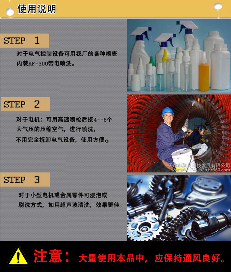 1、對于電氣控制設(shè)備:可用我廠的各種噴壺,內(nèi)裝AF-300II帶電噴洗。